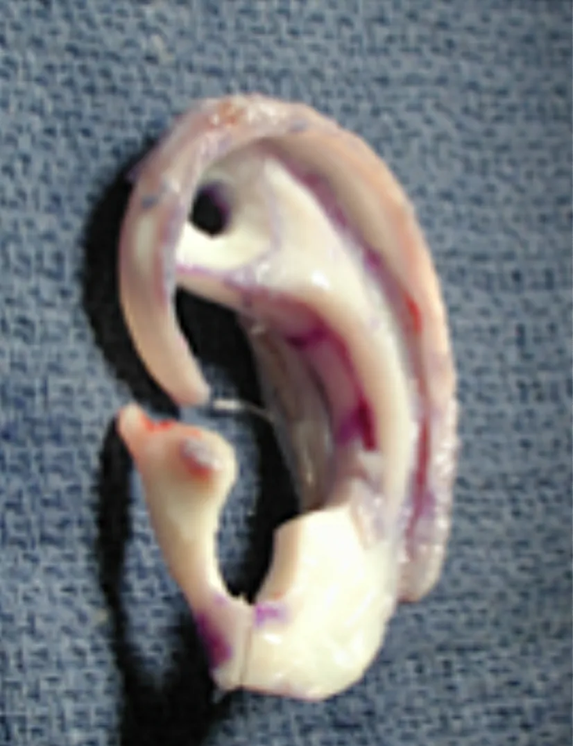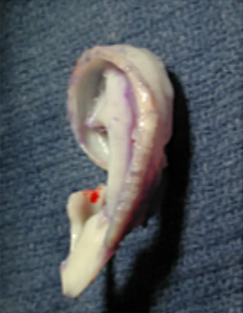 The Framework is created using the patient's own rib cartilage. The results achieved here depend largely on the surgeon’s artistic ability to mold & sculpt cartilage into an ear. This process begins with careful planning using precise measurements, patterns, molds & plaster casts made from both of the patient's ears & it ends with the Rib Cartilage Framework being placed under the skin.