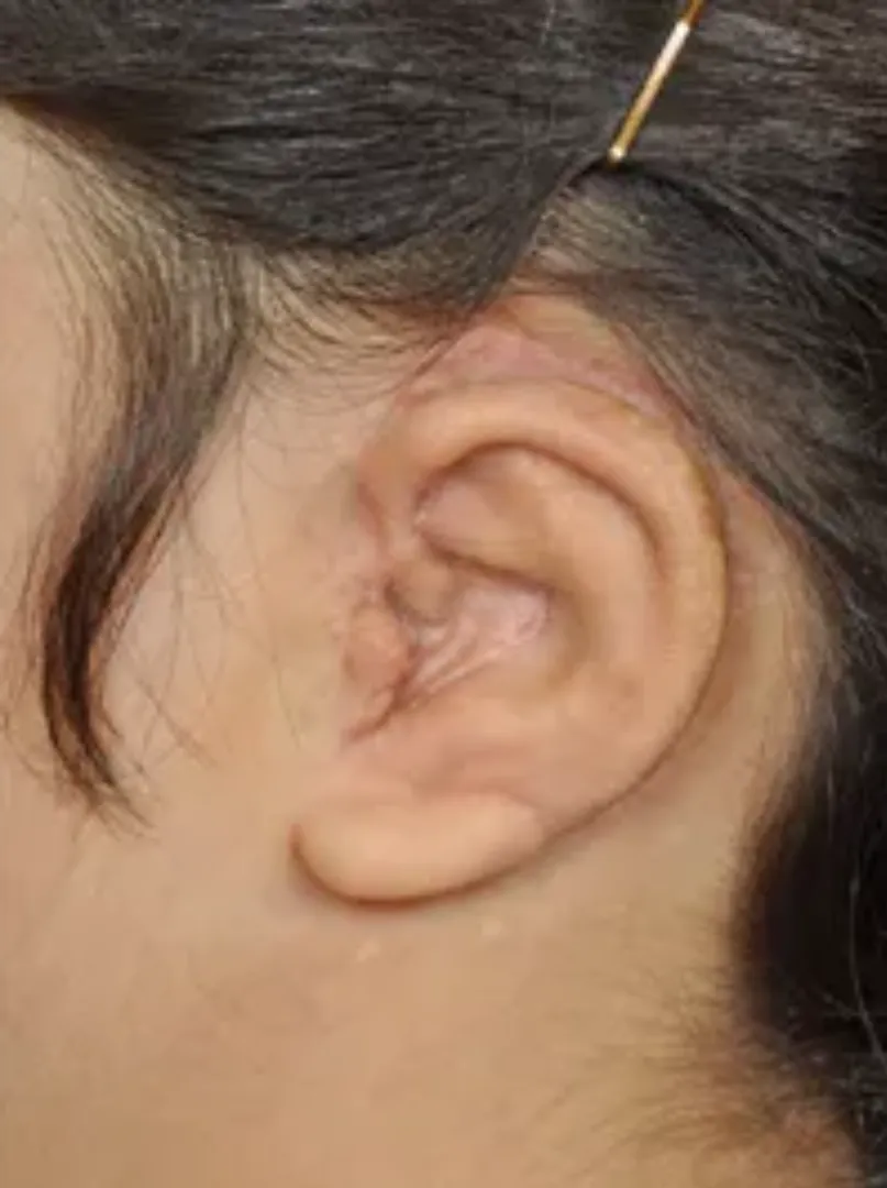from the head with a skin graft placed behind it which creates the space that exists behind all natural ears.